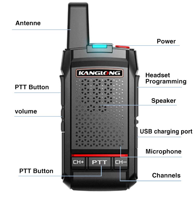 KANGLONG T-230 — это высокопроизводительная аналоговая радиостанция мощностью 2 Вт, не требующая лицензирования, отличающаяся сверхлегким корпусом весом всего 95 г и универсальной зарядкой через USB для бесперебойной работы в офисе.