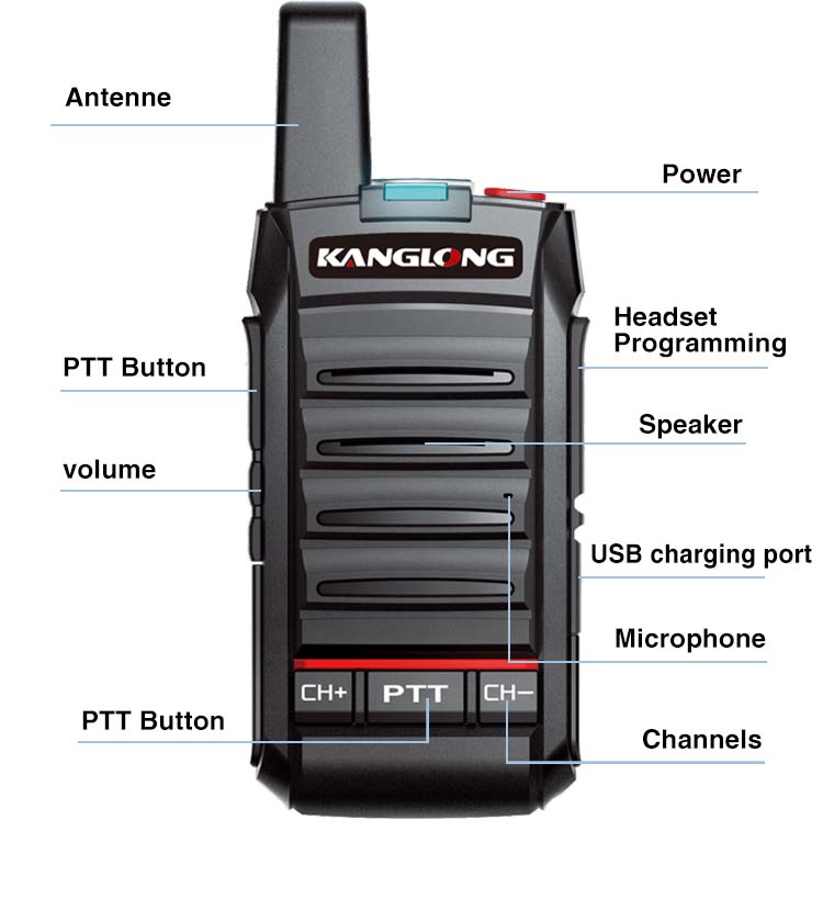 KANGLONG T-210 — это ультратонкая аналоговая радиостанция мощностью 2 Вт, не требующая лицензирования, предназначенная для удобной связи в розничной торговле и сфере гостеприимства, с удобной зарядкой через USB.